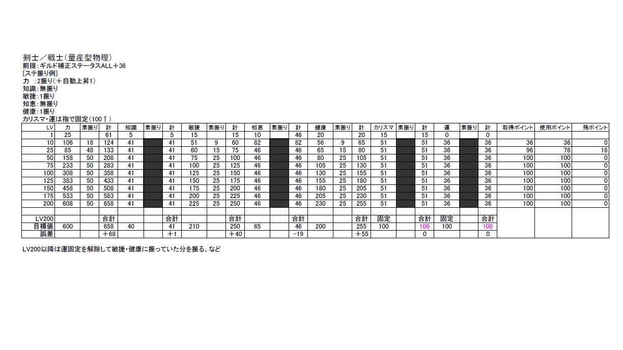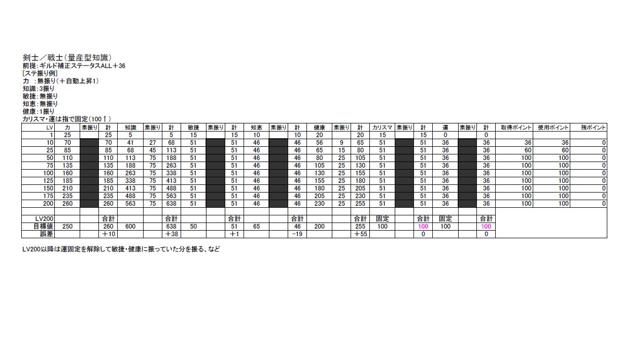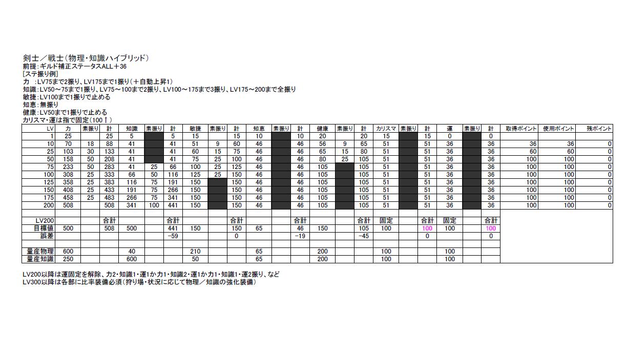 量産型物理・知識剣士のスキル振りをニコイチした感じで、普通はマスするようなスキルもマスしていなかったり、と。