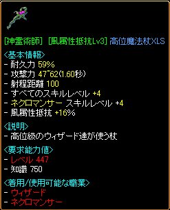先日入手したネクロスキル杖(装備要求LV440)がいい目標にもなり、