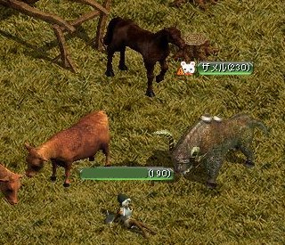 CC前にゴージャスさんが牛さんのHPを半分くらいまで削っておいたので、特技命令をし、ペットにタゲ固定。